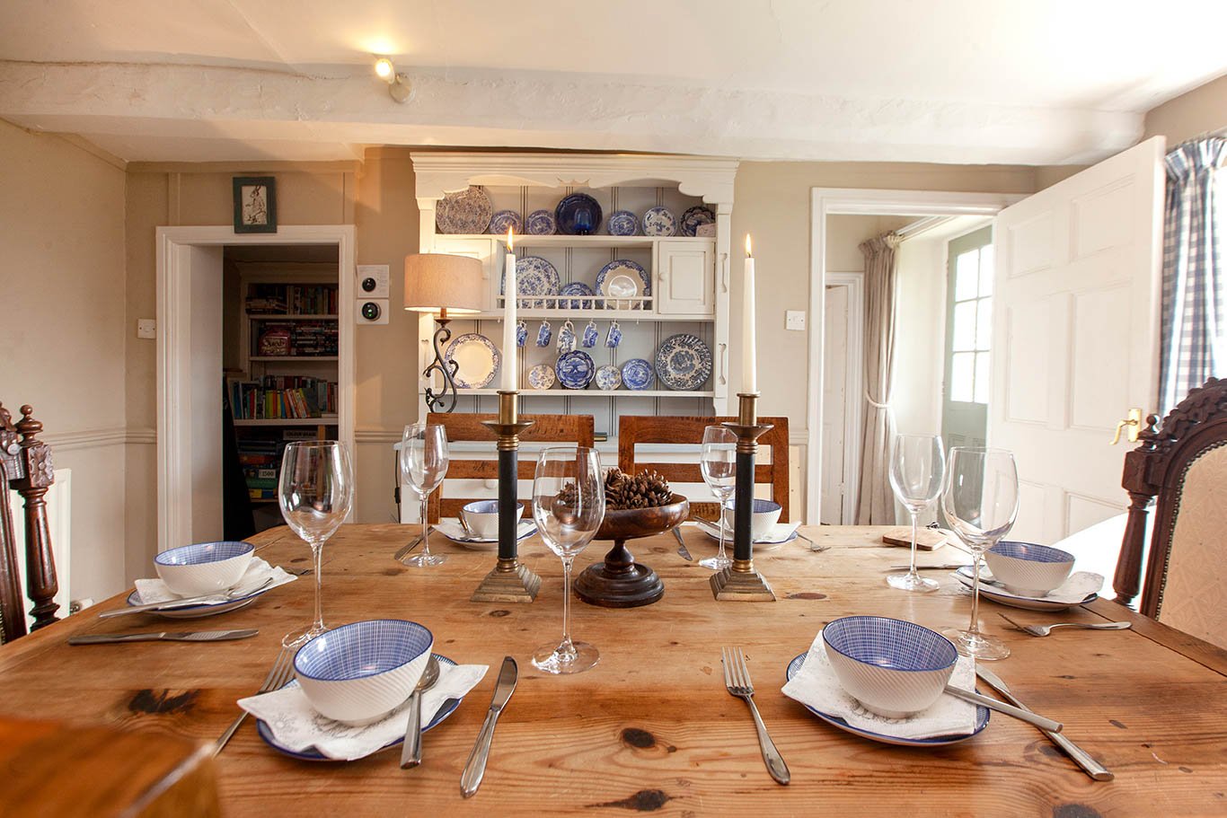 The spacious dining room provides additional seating, eating and reading spaces, and an additional log-burning fire. A selection of books, games and DVDs can be found in the cubby hole for those rainy days and quiet evenings in.